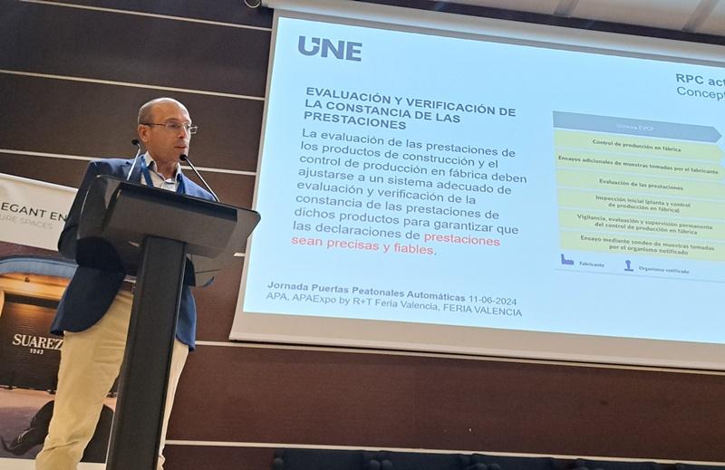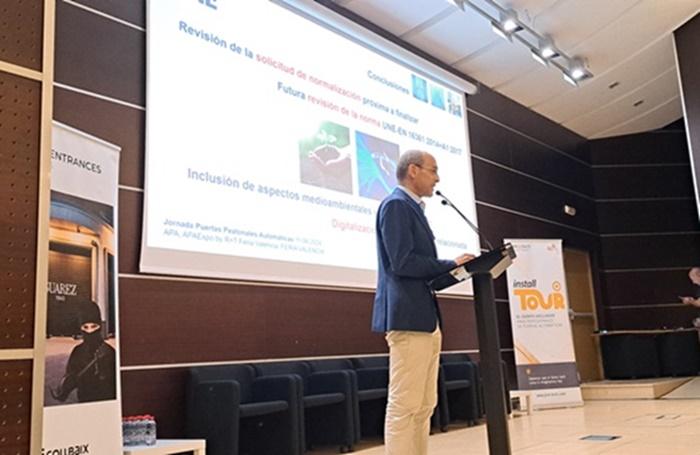 El pasado día 11 de junio, la JORNADA DE PUERTAS AUTOMÁTICAS organizada por APA, Asociación Española de Fabricantes de Puertas, en Feria Valencia, tuvo como ponente central a D. Javier López-Quiles Pastor, Gestor de Proyectos de Normalización de Construcción de UNE, bajo el título: