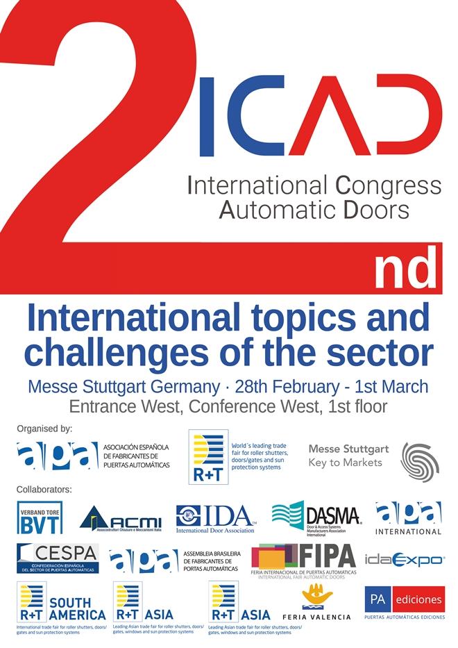 El proyecto del ICAD, CONGRESO INTERNACIONAL, fue iniciado por APA en febrero del 2017, en el marco de FIPA 2017, Feria Internacional de Puertas Automáticas, con la tarea de comunicar, analizar, examinar y promover temas de gran relevancia para el sector de puertas y portones automáticos, a nivel internacional. Una iniciativa de la colaboración entre APA y Feria Valencia, organizadores de FIPA.